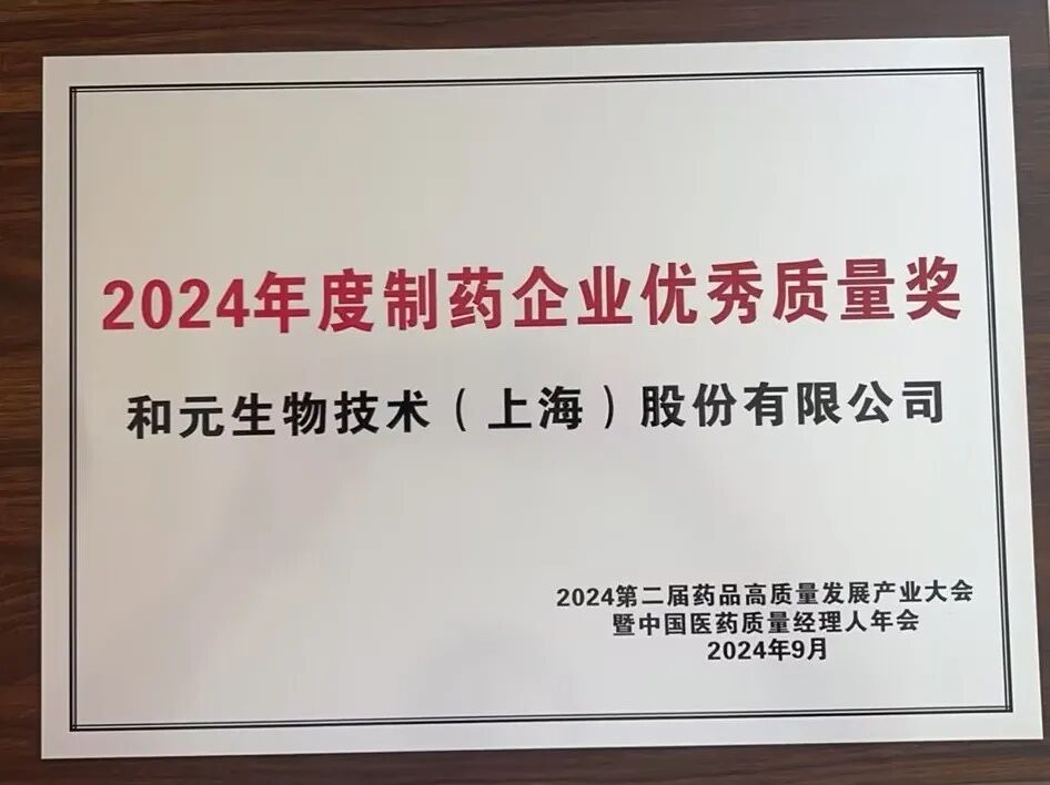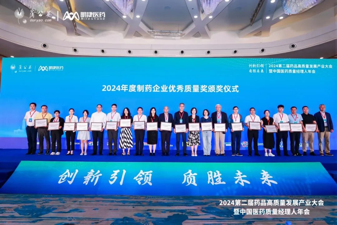 2024年9月19日,j9九游会生物在2024年度第二届药品高质量发展产业大会中荣获“2024年度制药企业优秀质量奖”荣誉。