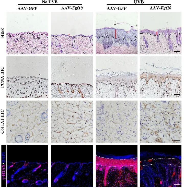 AAV9介导的FGF10 过表达降低了 UVB 诱导的背部皮肤表皮厚度增加