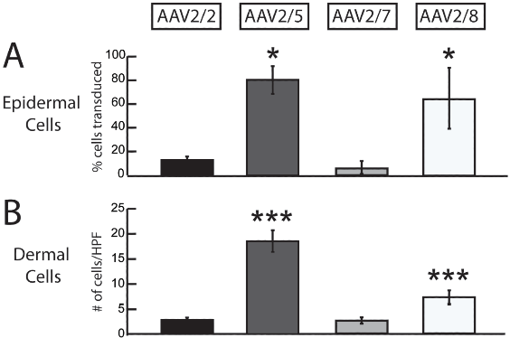 AAV5和AAV8感染表皮和真皮(PMID: 22713157)